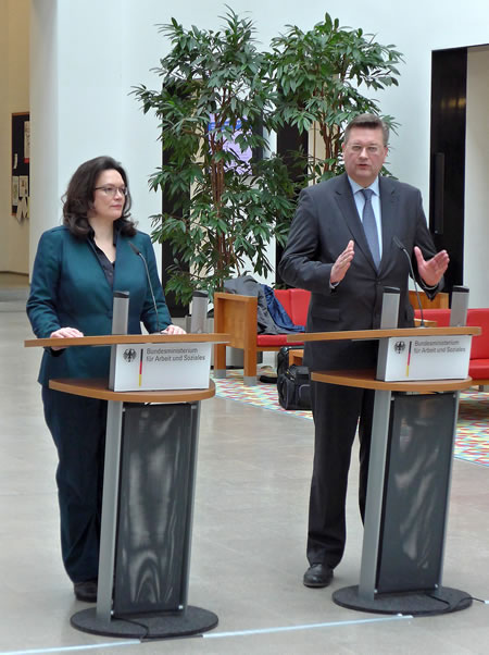 Bundesarbeitsministerin Andrea Nahles und Reinhard Grindel bei der Presse-