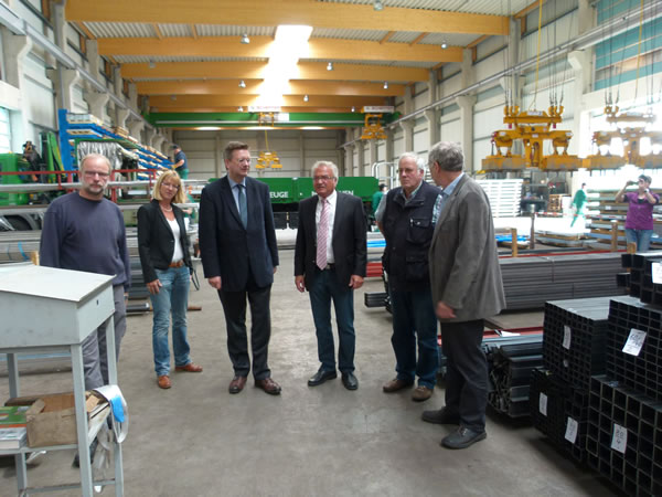 Eisenhandel Meyer erweitert seine Hallenkapazitäten in der Gottlieb-Daimler-Straße (v.l.): Silke Thorey-Elbers, Reinhard Grindel MdB, der ehemalige Geschäftsführer Norbert Schlichting, CDU-Stadtverbandsvorsitzender Friedhelm Egegrs und Hermann-Billung Meyer besichtigten die Firma |