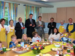 Mit Bürgermeister Uwe Wrieden beim Besuch der neuen Kinderkrippe des Vereins Spielmäuse |