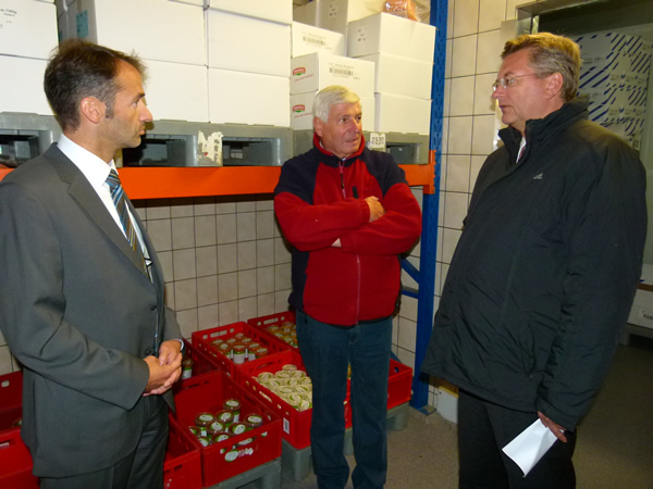 | Geschäftsführer Fritz Meyer zeigte Reinhard Grindel, Bürgermeister Carlos Brunkhorst und Mitgliedern des CDU-Gemeindeverbandes Neuenkirchen sein Unternehmen für Wurstwaren-Spezialitäten in Sprengel |