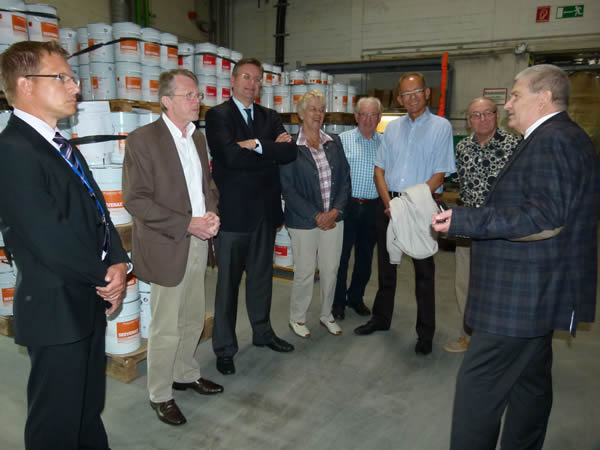 Hochtechnologie-Standort Scheessel durch die Firma Norix: Norix-Geschäftsführer Thomas Wichelmann, Vorsitzender CDU-Ratsfraktion Reinhard Frick, Reinhard Grindel, Renate Bassen, Ernst-August Kröger, CDU-Vorsitzender Scheessel Manfred Lieder, Wilhelm Riepshoff und Mankiewicz-Geschäftsführer Klaus Ludewig.